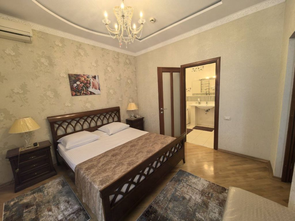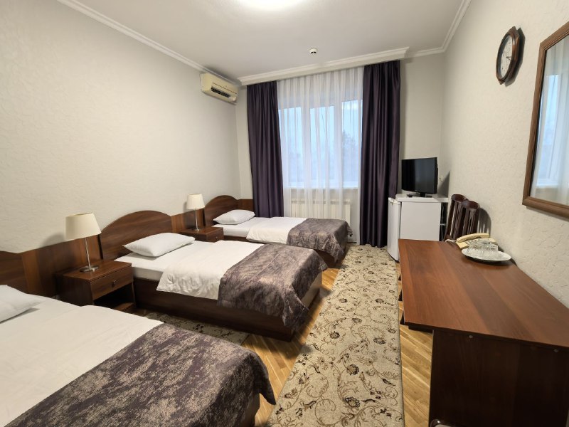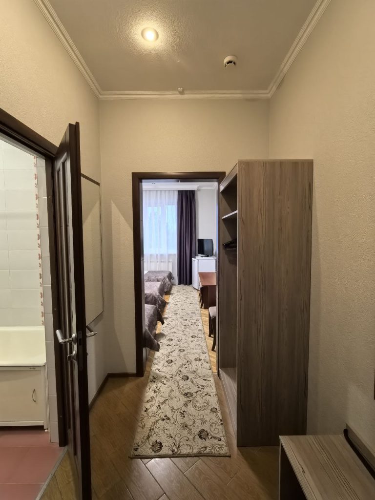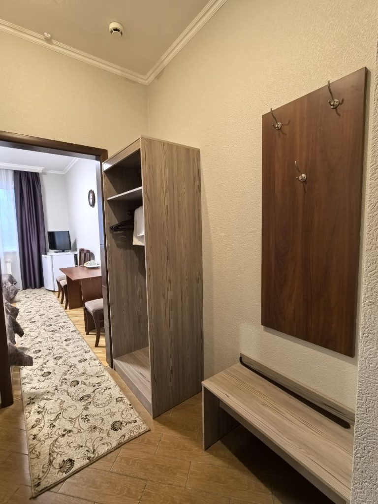 В комнате находятся 1 двухспальная кровать, ЖК-телевизор, тумбочка, 2 стула, письменный стол, телефон, сплит-система, санузел. Есть возможность 2х местного размещения,максимальное количество мест 2.